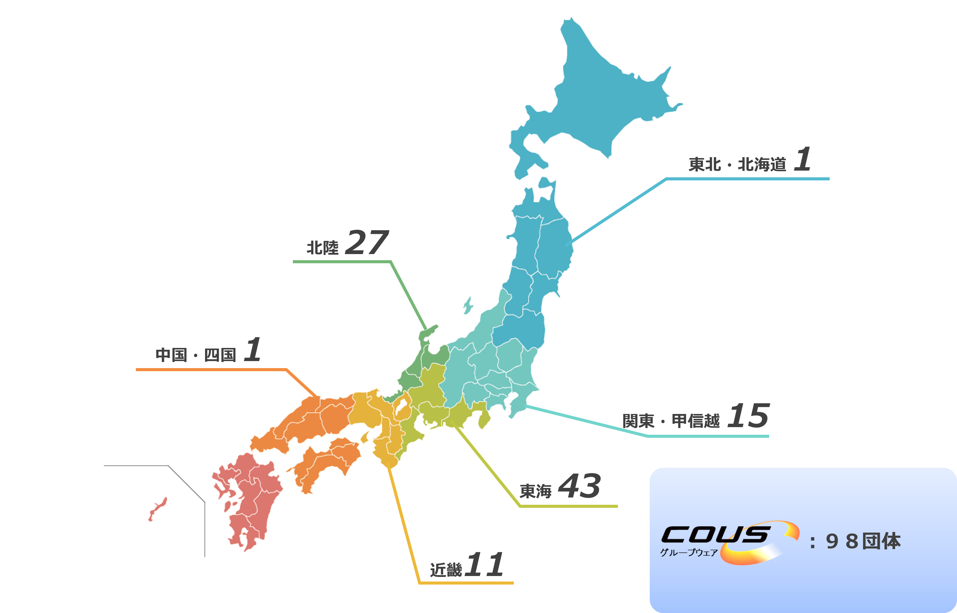 COUSグループウェアは、全国の多くの地方公共団体様や公立病院様にご利用いただいております。